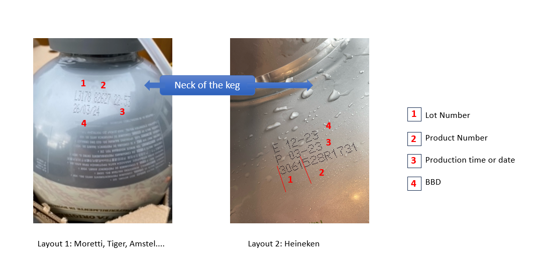 In the picture below, you can see the batch information about a Heineken, Heineken 0.0% and Tiger Blade keg.